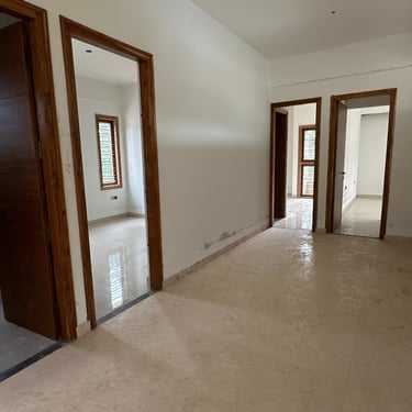 Marble flooring for Living, Dining, Bedrooms, and Kitchen.